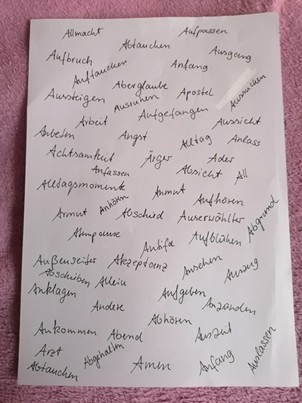 Wörter sind: Aufbruch, Anfangen, Abtauchen, Amen,