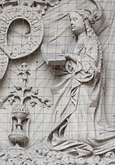 gegenüber – kniet Maria mit einem geöffneten Buch in der